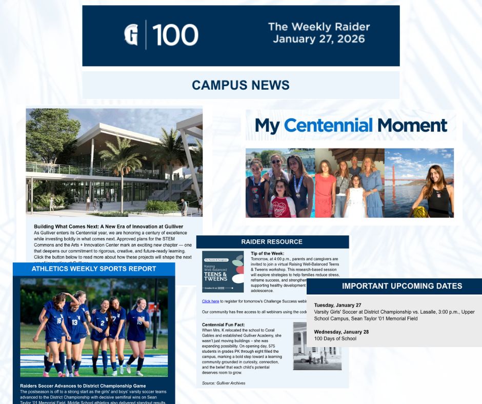Your one-stop shop for all things Gulliver Prep, The Weekly Raider is distributed every Tuesday.