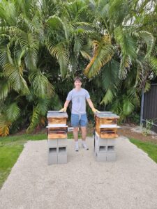 “My roots reach all the way back to when I was maybe 5 years old,” he says. “I partook in a beekeeping clinic with my family members and had a blast.” That early curiosity about bees stuck with him, and years later, it resurfaced during his 8th grade community service project for the International Baccalaureate Middle Years Programme (IB MYP). “My teammates and I built a beehive in my backyard to explain why bees and general pollinators are so important for our community,” he explains.