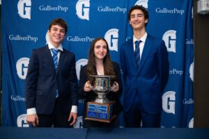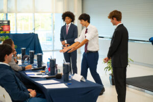 InvestiPlay, led by Emma Harari ‘28, Eduardo Ribeiro Do Valle ‘28, and Devon Roy ‘28, earned first place for its standout concept, followed by C-Bands, led by Wynn Allen ‘28, Christopher Allen ‘28, Sebastian Carrillo ‘28, and Hudson Burke ‘28, in second place. Their work reflected the depth of thought, problem-solving, and entrepreneurial mindset fostered through the program.